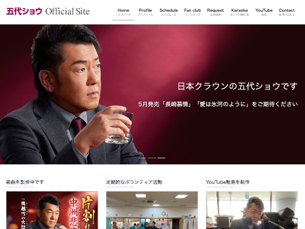 / 最終更新日時 : godai 未分類 ホームページ完成間近! ホームページが完成間近です。五代ショウの情報はもちろんですがカラオケ喫茶 笑のご案内など皆さんに愛される楽しいホームページを目指します。今後ともよろしくお願いいたします。